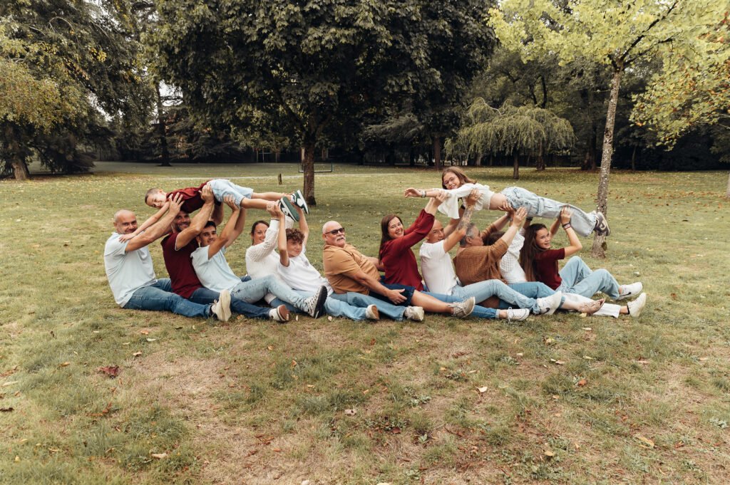 J’ai un vrai coup de cœur pour les séances multigénérationnelles : que vous soyez 3, 10 ou même 30, place aux rires et aux souvenirs partagés.