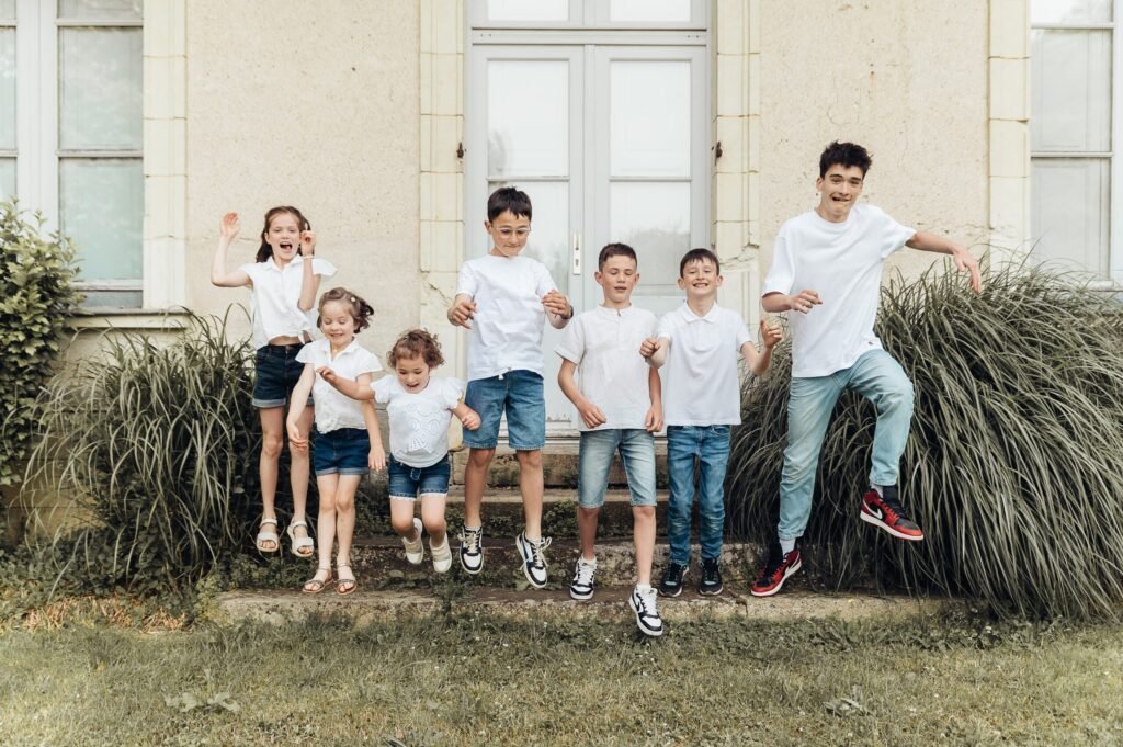 Le jour J, on bouge, on court, on saute, on chatouille, on se câline. Pas de pression, pas de “pose parfaite”. Juste du naturel, du rire et beaucoup d’amour.
